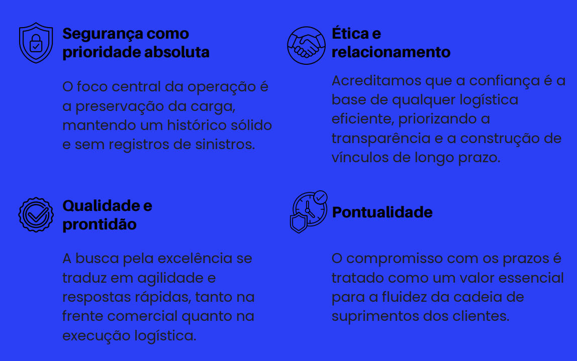 A identidade da MTrans é alicerçada em pilares que garantem a integridade de cada entrega.